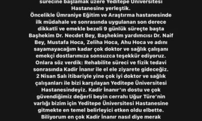 SANATÇI Kadir İnanırın hayat arkadaşı Jülide Kural, İnanırın Ümraniye Eğitim ve Araştırma Hastanesinden ayrıldığını, tedavisinin rehabilitasyon süreci için Yeditepe Üniversitesi Hastanesine yerleştirildiğini açıkladı. Beykozdaki evinde 24...