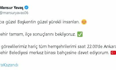 ANKARA Büyükşehir Belediye Başkanı Mansur Yavaş, “Büyükşehir tamam, ilçe sonuçlarını bekliyoruz” dedi.Mansur Yavaş, sandık sonuçları sisteme girilmeye devam ederken sosyal medya hesabından açıklama yaptı. Yavaş, AnkaraKazandı...