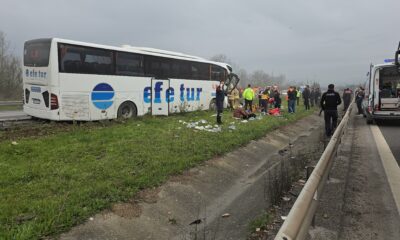 DÜZCEde Anadolu Otoyolunda yolcu otobüsünün aynı yöne giden TIR’a, ardından da bariyerlere çarptığı kazada, 17 kişi yaralandı.Kaza, saat 13.00 sıralarında, Anadolu Otoyolunun Düzce geçişi Beyköy beldesi...