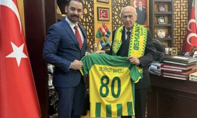 Osmaniyespor Kulübü Başkanı Mahmut Altay Kobaner, MHP Genel Başkanı Devlet Bahçeliyi makamında ziyaret etti. Bahçeli’ye kulübün Onursal Başkanlık Belgesini takdim eden Kobaner, takımın forma ve atkısını...