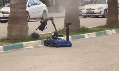 OSMANİYEde refüjdeki ağaç dibine bırakılan şüpheli çanta, bomba paniğine neden oldu. Yol trafiğe kapatılıp çevre güvenliği alındıktan sonra, bomba imha uzmanlarınca robot ile uzaktan kontrollü bir şekilde...