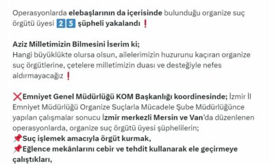 İÇİŞLERİ Bakanı Ali Yerlikaya, İzmir merkezli 3 ilde eş zamanlı düzenlenen Mahzen-13 operasyonlarında 2 ayrı organize suç örgütünün çökertildiğini ve 25 şüphelinin gözaltına alındığını duyurdu.Bakan Ali...