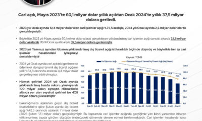 TİCARET Bakanı Ömer Bolat, “2024 yılı ocak ayında cari açıkta tarihi düşüş yaşandı. Cari açık, Mayıs 2023te 60,1 milyar dolar yıllık açıktan Ocak 2024te yıllık 37,5...