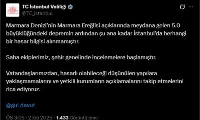 Flaş: DHA: İstanbulda hissedilen bir deprem oldu.