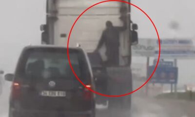 BATMAN’da yağmurlu havada TIR’ın arkasına tutunan bir kişinin tehlikeli yolculuğu, cep telefonu kamerasıyla kaydedildi.Batman-Diyarbakır Çevre Yolunda bir kişi, yağmurlu havada plakası öğrenilemeyen dorsesiz TIR’ın arkasına tutunarak...