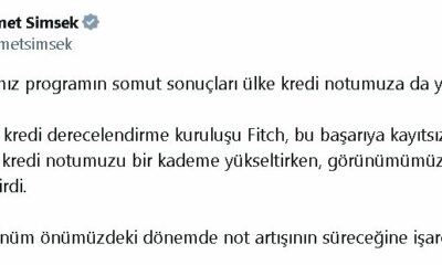 HAZİNE ve Maliye Bakanı Mehmet Şimşek, uluslararası kredi derecelendirme kuruluşu Fitchin, Türkiyenin kredi notunu bir kademe yükselterek, görünümünü pozitife çevirdiğini belirtti. Bakan Şimşek, “Yılın ikinci yarısında...