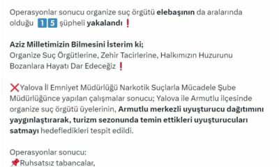 İÇİŞLERİ Bakanı Ali Yerlikaya, Yalovada eş zamanlı düzenlenen Mahzen-6 operasyonlarında organize suç örgütünün çökertildiğini ve 15 kişinin yakalandığını açıkladı.Bakan Yerlikaya, sosyal medya hesabından yaptığı açıklamada, “Yalova...