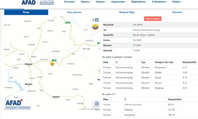 AFAD Kahramanmaraşın Elbistan ilçesinde saat 11.26da 4.4 büyüklüğünde deprem meydana geldi.
