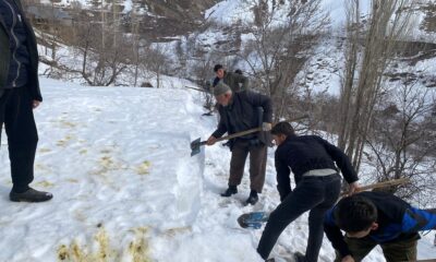 VANın Bahçesaray ilçesine bağlı Çatbayır Mahallesinde yaşayanlar, daha önce yağan kar nedeniyle evlerinin damındaki kar birikintilerini imece usulü temizliyor. Türkiyenin en fazla kar alan ilçelerinden Vanın...