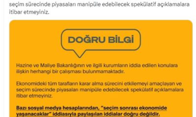 İLETİŞİM Başkanlığı Dezenformasyonla Mücadele Merkezi, bazı sosyal medya hesaplarından, seçim sonrası ekonomide olumsuzluk yaşanacağı yönünde yapılan paylaşımlardaki iddiaların doğru olmadığı belirtildi.Dezenformasyonla Mücadele Merkezinden yapılan açıklamada, “Bazı...