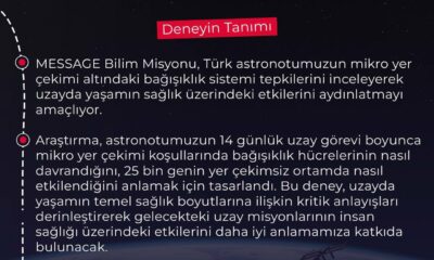 SANAYİ ve Teknoloji Bakanı Mehmet Fatih Kacır, Uluslararası Uzay İstasyonunda ‘MESSAGE’ isimli deneyin tanıtımını paylaştı. Sanayi ve Teknoloji Bakanı Kacır, ‘MESSAGE’ deneyine ilişkin sosyal medya hesabından...