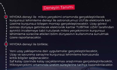 SANAYİ ve Teknoloji Bakanı Mehmet Fatih Kacır, Uluslararası Uzay İstasyonunda ‘MİYOKA’ isimli deneyin tanıtımını paylaştı. Sanayi ve Teknoloji Bakanı Kacır, ‘MİYOKA’ deneyine ilişkin sosyal medya hesabından...