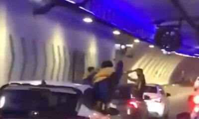 AVRASYA Tüneli’nde araçların camlarından sarkarak tezahürat yapan taraftarlar, tehlikeye davetiye çıkardı. Taraftarların tehlikeli yolculuğu bir sürücünün cep telefonu kamerasına yansıdı. Olay, dün Avrasya Tüneli’nde meydana geldi....