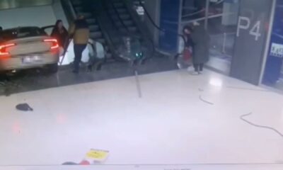 ŞİŞLİ’de bir AVM’nin otoparkında sürücüsünün kontrolünü kaybettiği otomobil, cam kapıyı kırıp içeri girerek yürüyen merdivenlerde asılı kaldı. Kazada 3 kişi yaralanırken, kaza anı güvenlik kamerası görüntülerine...