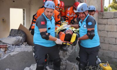 IĞDIR’da düzenlenen tatbikatta snaryoya göre 6 büyüklüğündeki depremin ardından AFAD ekipleri bir binada enkaz altında kalan 4 kişiyi yaralı olarak kurtarırken, depremzedeler için bölgede çadırkent kuruldu....