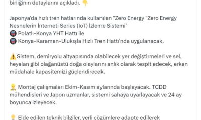 Bakanlığın sosyal medya hesabından yapılan açıklamada, “Japonyada hızlı tren hatlarında kullanılan “Zero Energy “Zero Energy Nesnelerin İnterneti Series (IoT) İzleme Sistemi” Polatlı-Konya YHT Hattı ile Konya-Karaman-Ulukışla...