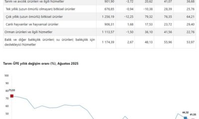 TÜİK, Ağustos 2025 dönemine ilişkin tarım ürünleri üretici fiyat endeksi verilerini açıkladı. Buna göre; tarım ürünleri üretici fiyatları, 2025 yılı Ağustos ayında bir önceki aya göre...