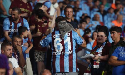 Kentte belediyede görev yapan fanatik Trabzonspor taraftarı Evren Yolcu, özel tasarımlı bordo mavili forma giydirip, kaşkol takarak omzunda gezdirdiği, ekran başında Trabzonspor’un maçlarını birlikte izlediği kedisi...