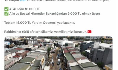 İÇİŞLERİ Bakanı Ali Yerlikaya, İstanbul’da sel ve su baskınlarından etkilenen ailelere hane başına 15 bin TL yardım ödemesi yapılacağını duyurdu. Bakan Yerlikaya, sosyal medya hesabından yaptığı...