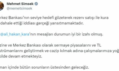 HAZİNE ve Maliye Bakanı Mehmet Şimşek, “Merkez Bankası’nın seviye hedefi gözeterek rezerv satışı ile kura müdahale ettiği iddiası gerçeği yansıtmamaktadır” dedi. Bakan Şimşek, sosyal medya hesabından yaptığı açıklamada,...