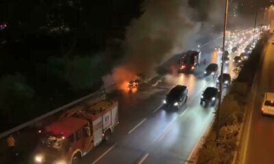BAĞCILAR, TEM Otoyolu’nda otomobilde yangın çıktı. Otomobilin alev alev yandığı anlar cep telefonu kamerasına yansıdı. Bağcılar, TEM Otoyolu’nda Cumartesi gecesi, bir otomobilde bilinmeyen nedenle yangın çıktı....