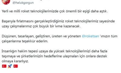 SAVUNMA Sanayii Başkanlığı, uzaya erişim çalışmaları kapsamında, tüm kritik alt sistemleri Roketsan tarafından geliştirilen yerli sonda roketinin fırlatma testini başarıyla geçtiğini duyurdu. Başkanlık, İğneada’da yapılan fırlatma testinden...