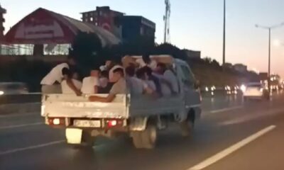 Cengiz ÇOBAN/İSTANBUL,(DHA ÜMRANİYE TEM Otoyolunda açık kasa kamyonette bir grubun tehlikeli yolculuğu cep telefonu kamerasına yansıdı. Yolculuk yapanların rahat tavırları ve kamyonet trafikte seyir halindeyken kasadakilerin...
