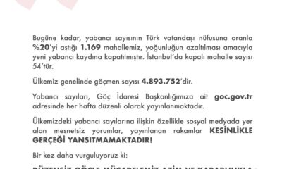 GÖÇ İdaresi Başkanlığı, bazı sosyal medya hesaplarında paylaşılan Türkiye’deki göçmen sayılarına ilişkin açıklama yaptı. Yapılan açıklamada, ülke genelinde göçmen sayısının 4 milyon 893 bin 752 olduğu ifade...