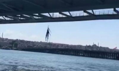 BEYOĞLU’nda metro köprüsüne çıkan bazı gençler metrelerce yükseklikten yolcuların şaşkın bakışları arasında denize atladı. Gençlerin tehlikeye davetiye çıkaran anları cep telefonu kamerası tarafından saniye saniye kaydedildi. ...