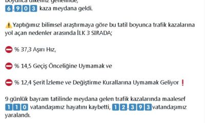 İÇİŞLERİ Bakanı Ali Yerlikaya, 9 günlük Kurban Bayramı tatilinde meydana gelen 6 bin 903 kazada, 110 kişinin hayatını kaybettiğini, 12 bin 393 kişinin yaralandığını açıkladı. Bakan Yerlikaya, Twitter...