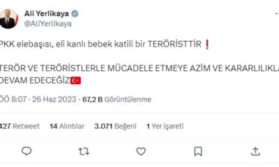 İÇİŞLERİ Bakanı Ali Yerlikaya, “Teröristlerle mücadele etmeye azim ve kararlıkla devam edeceğiz” dedi. Bakan Yerlikaya, Twitter hesabından açıklama yaptı. Yerlikaya, “PKK elebaşısı, eli kanlı bebek katili...
