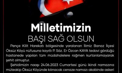IRAK’ın kuzeyinde yürütülen Pençe-Kilit Operasyonu bölgesinde 8 gün önce teröristlerin açtığı taciz ateşi sonucu yaralanan Piyade Sözleşmeli Er Özcan Kaya (25), tedavi gördüğü hastanede şehit oldu. Pençe-...