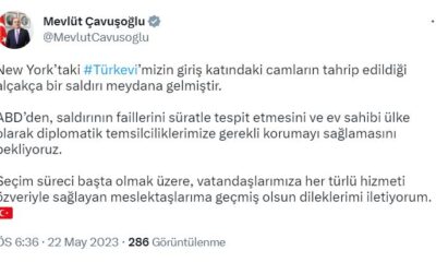 DIŞİŞLERİ Bakanı Mevlüt Çavuşoğlu, New York’taki Türkevi’ne alçakça bir saldırı düzenlendiğini belirterek, “ABD’den, saldırının faillerini süratle tespit etmesini ve ev sahibi ülke olarak diplomatik temsilciliklerimize gerekli...