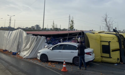 BAŞAKŞEHİR’de meyve yüklü TIR, sürücüsünün direksiyon hakimiyetini kaybetmesi nedeniyle kontrolden çıkarak bir otomobilin üzerinde devrildi. Kazada 2 kişi yaralandı. Kaza, saat 17.40 sıralarında Arnavutköy-Habibler Yolu üzerinde...