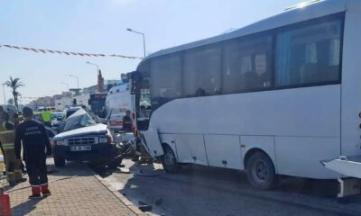 İZMİR’in Güzelbahçe ilçesinde asker ve sivil memurları taşıyan servis midibüsüyle, kamyonet çarpıştı. Kazada kamyonetin sürücüsü Hüsnü Öztepe (86) öldü, 6 kişi yaralandı. Kaza, saat 07.30 sıralarında, Mithatpaşa Caddesi...