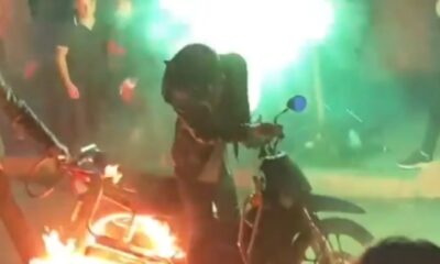 BAĞCILAR’da asker eğlencesi için toplanan kalabalıkta tehlikeli bir gösteri yapıldı. Kalabalığın ortasında motosiklet tekerine yanıcı sıvı dökülerek yakılan ateş motosiklet sürücüsüne sıçradı. O anlar cep telefonu...
