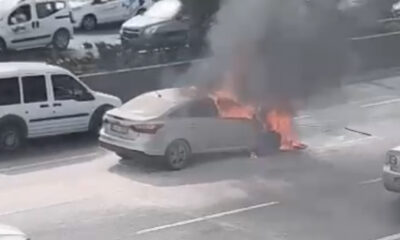 FATİH’te seyir halindeki otomobilde bilinmeyen bir nedenle yangın çıktı. Otomobilin alev alev yandığı anları, çevredekiler cep telefonu kamerasıyla görüntüledi. Vatan Caddesi Bayrampaşa istikametinde seyir halindeki bir...