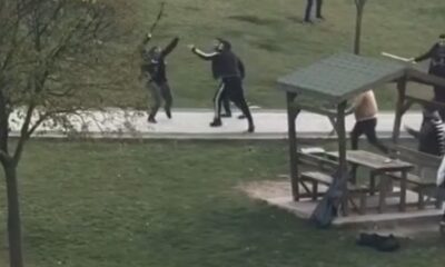 GAZİOSMANPAŞA’da iki grup, gündüz saatlerinde parkta sopa ve kemerlerle kavga etti. Gece saatlerinde yine bir araya gelen gruptakiler, silah ve bıçaklarla birbirilerine saldırdı. O anlar kameralara...