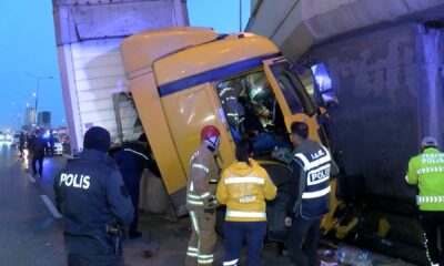 PENDİK, D-100 Karayolu’nda şoförünün direksiyon hakimiyetini kaybettiği TIR, üst geçide çarptı. Kazada şoför yaralanırken, bölgede trafik yoğunluğu oluştu. Kaza, saat 06.00 sıralarında D-100 Karayolu Ankara istikametinde...