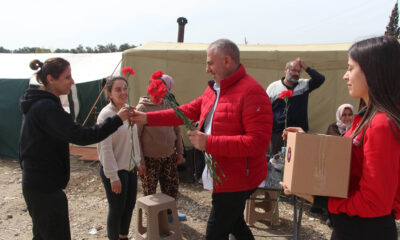 KAHRAMANMARAŞ merkezli depremlerde büyük yıkımın olduğu Hatay’da, çadırlarda yaşamını sürdüren kadınların 8 Mart Dünya Kadınlar Günü karanfillerle kutlandı. Adana’dan getirdiği karanfilleri kadınlara veren kebapçı esnafından Yaşar Aydın,...