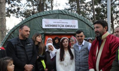 KAHRAMANMARAŞ’ta yıkıma neden olan iki büyük depremin ardından kentteki ilk nikah, Fuar Merkezi’ne kurulan çadır kent içerisinde dün kıyıldı. Evleri depremde hasar gören Ayşe ve Nevzat...