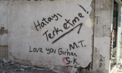 KAHRAMANMARAŞ merkezli 7.7 ve 7.6 büyüklüğündeki depremlerin ardından 6.4 ve 5.8 büyüklüğünde 2 deprem daha yaşayan Hatay’da duvarlara yazılan ‘Her şey güzel olacak’, ‘Seninleyiz Hatay’ gibi yazılar...