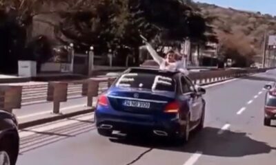 SARIYER’de düğün konvoyunda gelin, aracın açılır tavanından çıkarak silahla havaya ateş etti. O anlar cep telefonu kamerasıyla görüntülendi. Olay, dün saat 12.30 sıralarında Sarıyer Hacıosman Yolu’nda...