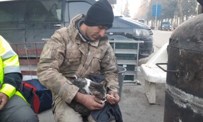 KAHRAMANMARAŞ’ta, depremde enkazda yaralandığı için tedavisi yapılan kedinin bandajını yenileyen jandarma, yiyecek ve su verdi. Jandarma, kediyi yıkılan binadan kurtulan kişiye teslim etti. Kahramanmaraş’ta, depremde en...