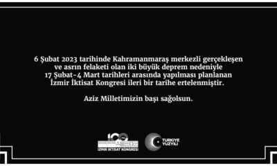CUMUHRBAŞKANI Recep Tayyip Erdoğan’ın himayesinde 17 Şubat-4 Mart tarihleri arasında yapılması planlanan İzmir İktisat Kongresi, Kahramanmaraş’ta meydana gelen depremler nedeniyle ertelendi. İzmir İktisat Kongresi’nin (1. İktisat...