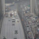 İSTANBUL’da etkili olan şiddetli rüzgar nedeniyle, kamyonete bağlı boş römork köprü korkuluklarına doğru yan yattı. Römorkun köprüden uçmaması için halatlarla bağlandı. Ekiplerin çalışmasının ardından römork kaldırılırken,...