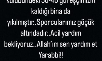 Milli güreşçi Taha Akgül, Kahramanmaraş’ta 30-40 güreşçinin enkaz altında kaldığını belirterek, yardım çağrısında bulundu. Doğu, Güneydoğu, İç Anadolu ve Akdeniz bölgesinde birçok ili etkileyen 7,4 büyüklüğünde...