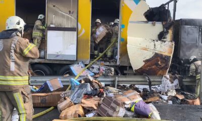 ARNAVUTKÖY’de kargo yüklü kamyon seyir halindeyken alev alev yandı. Yangın itfaiye ekiplerince söndürülürken, yüzlerce kargo kullanılamaz hale geldi. İstanbul Havalimanı Yolu Arnavutköy yol ayrımı mevkiinde saat...