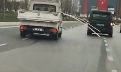 SULTANGAZİ-Arnavutköy yolunda seyir halindeki bir kamyonetin kasasında taşınan plastik borular, araçlara çarparak trafiği tehlikeye attı. Plastik boruların çok sayıda araca çarptığı anlar cep telefonu kamerasına yansıdı. ...