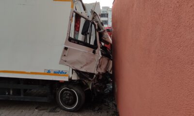 ESENYURT’ta freninde arıza çıktğı öne sürülen kamyon yokuş aşağıya kayarak 2 araca sonra da cami duvarına çarptı. Kamyonda sıkışan sürücü yaralı olarak kurtarılırken, kamyonun duvara çarptığı...